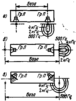 Мы уже давно привыкли к тому, что стереофонические установки имеют как минимум два разнесенных громкоговорителя. Как уже отмечалось, для дальнейшего улучшения звучания рекомендуется использовать четыре и более громкоговорителей. Но, как показывает практика, наличие нескольких разнесенных громкоговорителей загромождает жилое помещение, опутывает его проводами, создает некоторые неудобства. Поэтому у радиолюбителей и радиоконструкторов давно возникло желание создать моноблочные стереофонические громкоговорители, т. е. такие конструкции, а которых головки обоих каналов стереофонической системы размещались бы в одном корпусе. Следует отметить, что моноблочные стереофонические громкоговорители существуют давно в виде так называемых консольных радиол и радиокомбайнов высокого класса. Такие установки по своим размерам превосходят порой старинные комоды. Попытки уменьшить размеры моноблочных стереофонических громкоговорителей сталкиваются с трудностями сохранения размера стерео-базы. Дело в том, что стереоэффект проявляется .в том случае, когда расстояние между громкоговорителями левого и правого каналов составляет 1,5-2,5м, а сам слушатель находится на равном расстоянии перед громкоговорителями (около 1-3 м). При размещении головок обоих громкоговорителей в одной плоскости база стереосистемы равна примерно расстоянию между центрами диффузоров головок различных каналов. Поэтому уменьшая размеры корпуса, мы тем самым уменьшаем базу стереосистемы и снижаем проявление стереоэффекта. За рубежом известно несколько систем стереофонических громкоговорителей с уменьшенной базой. Но прежде чем перейти к рассмотрению собственно конструкции, остановимся кратко на принципе ее действия, иллюстрируемом рис.1,а-в.