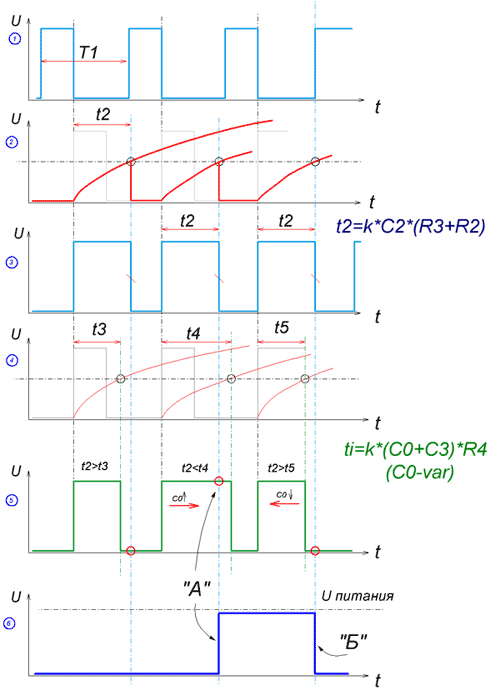 Рассмотрим работу схемы по диаграммам на рисунке 2: