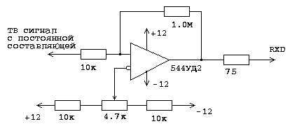 Puc.2 Настройка хорошо описана в [Л1,Л2]. Выходной контур настраивается на штатную антенну по показаниям любого СВЧ пробника. ПРИЕМНИК - обычный телевизор с ДМВ-диапазоном. Сигнал снимается с выхода СМРК с постоянной составляющей (Puc.3). Компаратор также сложности не представляет, выход подключается к RXD COM-порта.