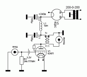 Предварительный усилитель на трех деталях на лампе 6э5п Главная -> Статьи -> Предварительные усилители -> Предварительный усилитель на трех деталях на лампе 6э5п