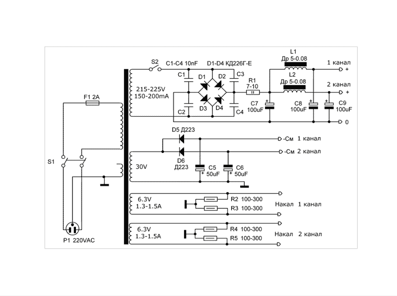 Каналы усилителя выполнены на комбинированных лампах