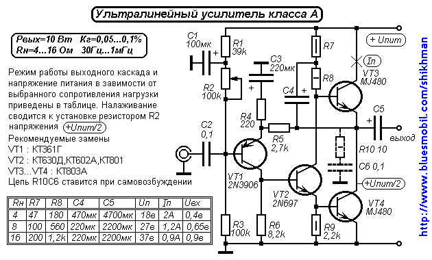 Усилитель мощности с балансным дифференциальным входным каскадом