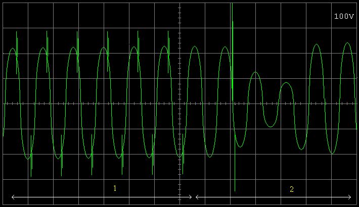 Кто-то скажет: “ну а нам пофигу гадит наш РС в сеть или нет. Ну сэкономили ушлые китайцы на сетевом фильтре, ну и что.”Возможно вас убедит следующая осциллограмма.