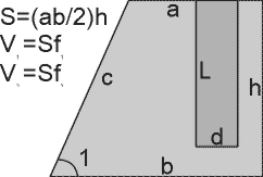 Диапазон частот: 14-64 Гц (0...-3дБ) Чувствительность: 90 дБ (40 Гц) Корпус сабвуфера изготавливается из ДСП и имеет оптимальную форму для установки непосредственно за задним сиденьем (вплотную к нему). Конечно если это позволяет конструкция кузова автомобиля, как например почти во всех японках, универсалах, хэтчбеках, Пассатах после 88г.в., любых Ауди 100. В разных автомобилях сиденья установлены под разным углом, и соответственно угол 1 будет у каждого свой и размеры стенок будут различаться. Но не намного: размеры динамика таковы, что края динамика находятся очень близко к стенкам сабвуфера и поэтому размеры стенок будут не намного отличаться. Главное, чтобы объемы камер 1 и 2 были выдержаны с высокой точностью. V1=16л, V2=11л (с фазоинвертором). Далее приведены формулы, по которым нужно высчитывать размеры исходя из заданного объема (S -площадь нашей трапеции, h -высота, ориентировочно 30см). Внимание! Все размеры внутренние.