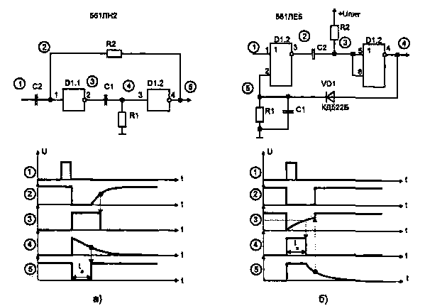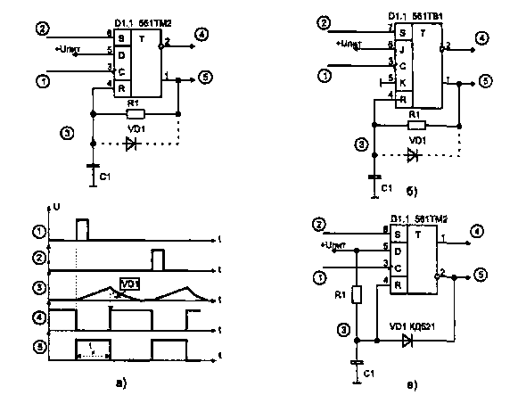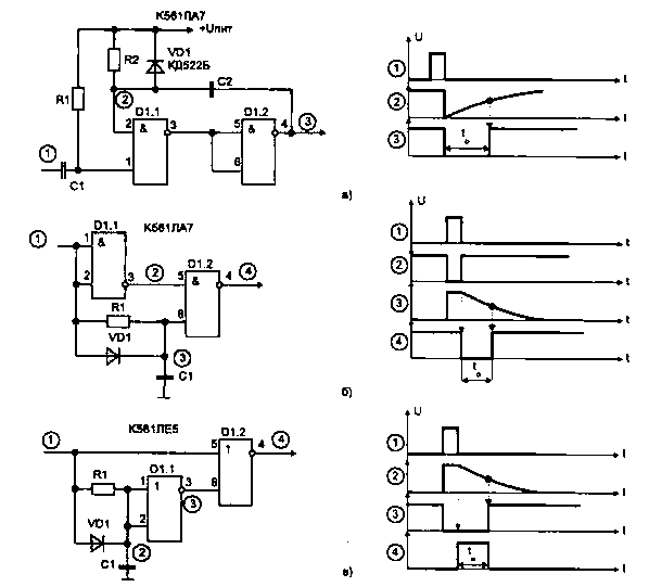 Рис. 1. 22 Схемы формирователей задержанного импульса.