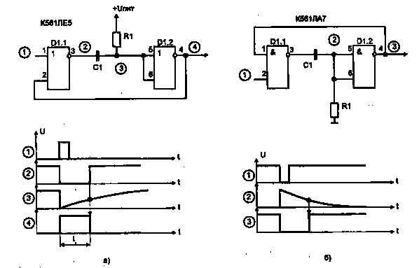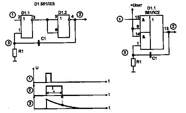 Рис. 1.18 Одновибраторы с двумя времязадающими цепями