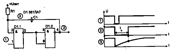 Рис. 1.11. Одновибратор с одной времязадающей цепью