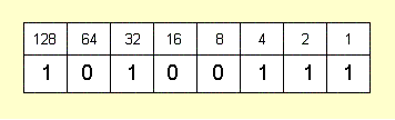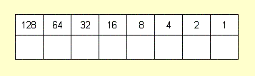 Множитель старшего разряда в ней будет равен 128. Далее – 64, 32, и т.д… Всего – 8 разрядов. Сразу ставим в старший разряд 1. Дальше станет понятно почему.