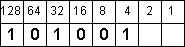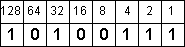 1*128 + 0*64 + 1*32 + 0*16 + 0*8 + 1*4 + 1*2 + 1*1 =