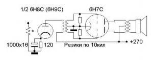 триоде, 6Н7С с фикс. питанием -5 вольт.