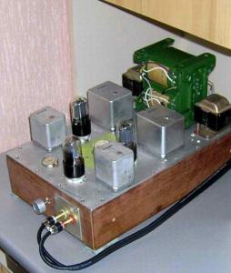 Для начала мне хочется предложить вам поразмыслить на тему стереотипов. Если внимательно осмотреться вокруг, то на каждом шагу мы видим их проявление. Однажды, прослушивая на магнитофоне записи пациентов одного психологического кружка по интересам, где-то на второй или третьей кассете я просто содрогнулся от мысли, насколько мы похожи друг на друга. Из динамика неторопливо лилась человеческая речь, и разные люди, разного пола, рассказывали об одних и тех же проблемах, выражая при этом похожие эмоции, и по существу проецировали одинаковые взгляды на мир, пусть даже облеченные в непохожие слова. Как будто все они были выращены в одном гигантском циплячем инкубаторе. Да, такова инерция мышления, когда один произнес, другой принял на веру и уже с пеной у рта (или с наганом в руке) втемяшил намертво в голову следующего. Так рождаются мифы и целые народы покорно бросают на их алтарь свои жизни. Не правда ли, драматичное начало? Что поделаешь, такова жизнь. Впрочем, отчасти, в этом есть некий сакральный смысл, так сказать «борьба и единство противоположностей», когда одни создают мифы, другие же, если человек сильно увлечен процессом творчества, способны развеять эти мифы так же, как легкий бриз сгоняет утренний туман с полированной глади реки. Но вернемся к нашим баранам и попробуем пробить в незыблемой скале постулатов Высокого Конца (Хай-Энда) хотя бы маленькую брешь. Начнем с мифа первого. Усилитель мощности должен быть мощный! Как следует из названия, он эту мощу обязан умощать как можно сильнее, и средств для этого предостаточно. На рынке присутствуют и большие лампы, и возможность ставить лампы в параллель, и различная схемотехника, и все лишь для того, чтобы обзавестись как можно большим количеством единиц этого «блага», так называемых «Ваттов». Напрямую с первым мифом связан и второй, а именно, усилитель должен быть большим и тяжелым, желательно просто неподъемным, на колесиках, и как верх недостижимости, Маэстро Гроссо (не в обиду автору, я уважаю Ю. Макарова). Миф третий. Усилитель должен быть однотактный. Можно конечно и двухтактный, но при любом раскладе, владелец однотактника чувствует себя на порядок круче, и свысока поглядывает на прочую мелочь, особенно если в комплектующих аппарата находится магическое для уха любого аудиофила словосочетание «300b»( в настоящее время 6С19П). И миф четвертый, настоящий усилитель должен работать только в классе «А». Что ж, противники достаточно серьезные, но для того, чтобы их не то чтобы победить (мы не задаемся целью создать новый миф, мы всего лишь ищем наш субъективный, идеальный звук), а просто подвинуть на пьедестале, вовсе не обязательны сверхнавороченные комплектующие и провода из чистого серебра или золота(см. последнее фото). Нужно лишь внимательно смотреть по сторонам, выделять из общей массы казалось бы незначительные мелочи, и не бояться идти против течения. Пустые слова, скажете вы, и будете неправы. Итак, вот наш герой, скромный труженик натурального звука, маленький двухтактник на трех лампочках и совсем не грозный на вид. Мало того, он легко переносится с места на место и имеет мощность на нагрузке 8ом всего каких то 1,6 ватта, синус 50-16000 при 0дб. К тому же работает совсем не в общепринятом среди ярых любителей музыки классе «А». Теперь немного информации