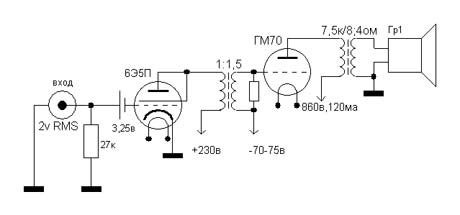 маловато будет . Потом попалась схема Манакова 6Э5П - ГМ