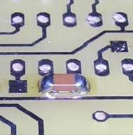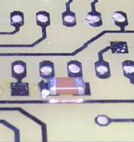 в капельки олова, которые зафиксируют ножки компонента на дорожках. При