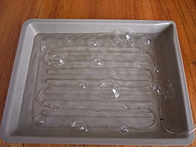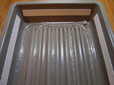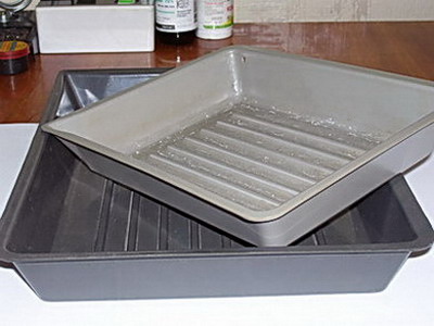 Вступление. Не думаю, что открою большой секрет, если скажу, что на скорость и качество при травлении печатных плат влияют несколько основных факторов. Для примера: если процесс травления происходит в растворе хлорного железа комнатной температуры, то длится он, как правило, от 40 мин. до 2,5 часов (в зависимости от насыщенности раствора). Если же раствор подогреть, то сам процесс травления удается сократить по времени раза в полтора. Да и вообще, в идеале, сам раствор должен периодически перемешиваться, в этом случае процесс происходит еще быстрее. Эти факторы влияют непосредственно на скорость травления. Если же говорить о качестве плат, то это касается в первую очередь тех радиолюбителей, которые переносят рисунок на текстолит методом “лазерного принтера и утюга”. Несмотря на то, что тонер держится на фольге довольно крепко, если процесс травления затягивается по времени, то хлорное железо все же попадает под тонер. В этом случае дорожки получаются “пористыми”, что в свою очередь ухудшает качество самой платы и устройства в целом. Технически же процесс перемешивания раствора можно осуществить несколькими способами (все зависит от изобретательности и “заточенности” рук), но наиболее оптимальным, на мой взгляд, является метод “микропузырьковой ванны”. Именно таким способом изготавливаются заводские платы. Суть метода довольно проста, но очень эффективна. На дне резервуара с хлорным железом расположена пластиковая трубка, в которой через равные промежутки пробиты отверстия. С одного конца трубка заглушена, с другого подается сжатый воздух. В результате, поднимающиеся со дна резервуара пузырьки воздуха естественным образом перемешивают раствор хлорного железа, тем самым, ускоряя процесс травления. Не предусмотрено, правда, подогрева раствора, но так как процесс травления происходит довольно быстро (5 – 10 минут), то данная опция в принципе не имеет смысла, раствор просто предварительно подогревается и заливается в резервуар уже теплым. Итак, на этом вступление можно завершить и приступить непосредственно к осуществлению задуманного. Резервуар. В качестве резервуара для данной конструкции, естественно, можно использовать любую удобную емкость, мне же на глаза попались кюветы для проявки фотографий. Выглядят они следующим образом: