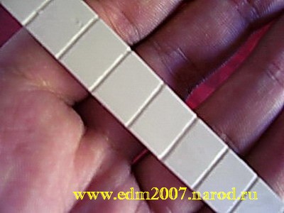 На каждой полоске делаются пропилы на половину толщины пластмассы, с шагом в один сантиметр: