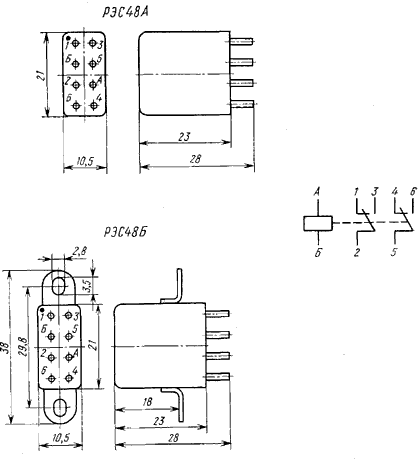 По способу крепления реле классифицируются: РЭС48А — без угольников РЭС48Б — с угольниками для крепления реле.