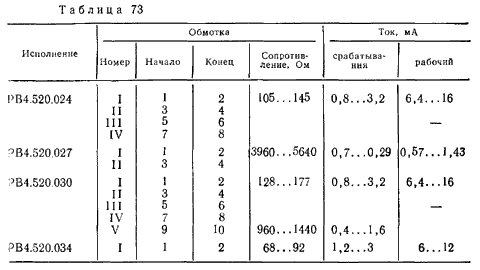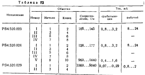 контактов в диапазоне возбуждения обмотки рабочим током.