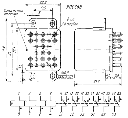 РПС36А — без угольников; РПС36Б — с угольниками для крепления реле.