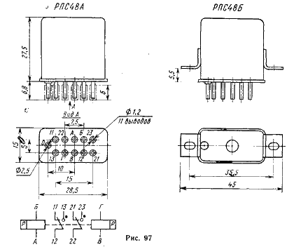 Герметичное, поляризованное, двухпозиционное реле постоянного тока РПС48