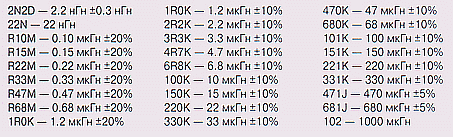 Кодовая маркировкаОбычно для индуктивностей кодируется номинальное значение индуктивности
