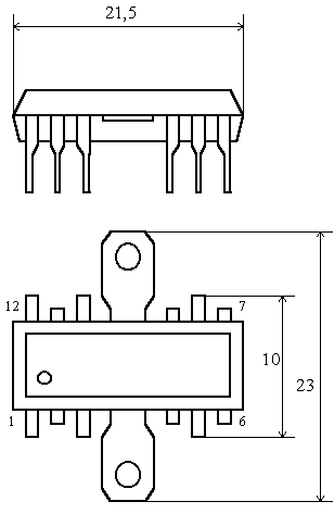 Микросхема представляет собой усилитель мощности звуковой частоты. Содержит 86 интегральных элементов. Конструктивно оформлена в корпусе типа 238.12-2. Масса не более 1,5 гр.