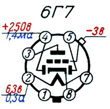 Схемы применения лампы 6Г7 аналогичны схемам применения