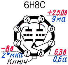 триода 3,8. Выходная первого триода 0,8. Проходная второго триода 4,0.