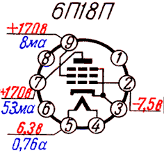 Пентод 6П18П, применяемый в оконечном каскаде мощности