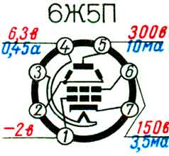 6Ж4. Схемы применения лампы 6Ж5П аналогичны схемам применения лампы 6Ж4.
