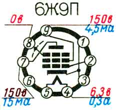 | Крутизна характеристики при напряжении накала 5,7 В, мА/В |