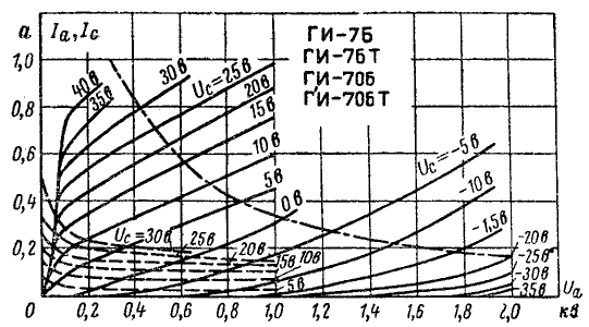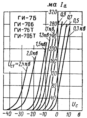 Междуэлектродные емкости для ламп ГИ-7Б и ГИ-70Б: