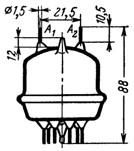 Междуэлектродные емкости: Сетка-катод 7,8 пФ. Анод-катод
