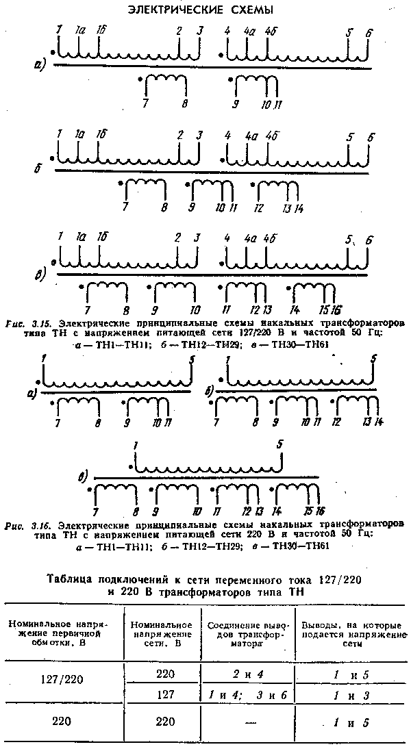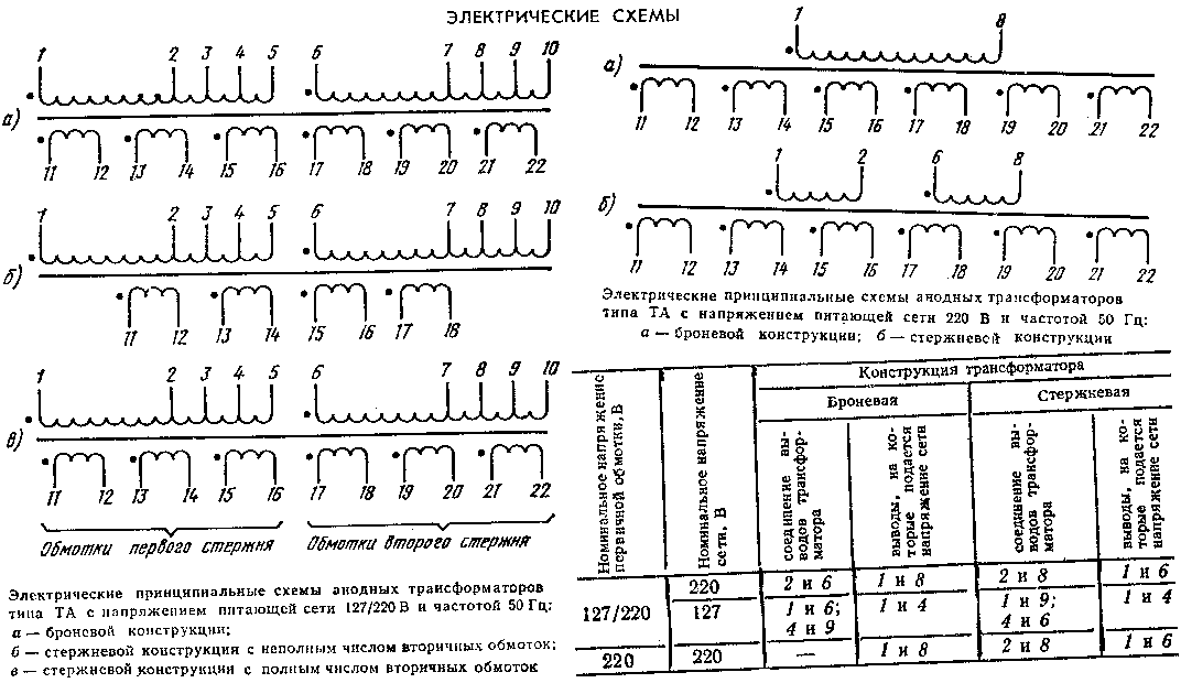 Электрические схемы трансформаторов ТАН и таблица подключений