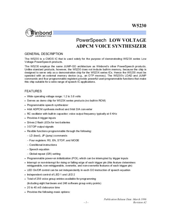 Datasheet W5230: