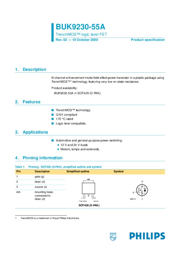 Datasheet BUK923055A02: