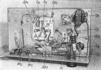 Рис.3. Вид со стороны монтажа В конструкции передатчика почти нет дефицитных деталей. Переключатель П1 одноплатный на три положения. Данные катушек и дросселей сведены в таблице.