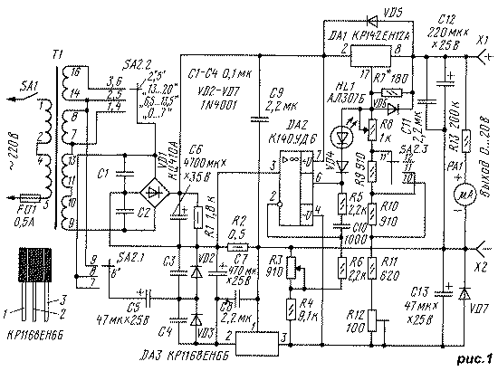 Под таким заголовком в "Радио", 1998, #5 было опубликовано описание несложного блока питания на микросхемах серии КР142. Особенностью нового варианта блока является возможность плавной установки порога ограничения выходного тока от единиц миллиампер до максимальной величины.