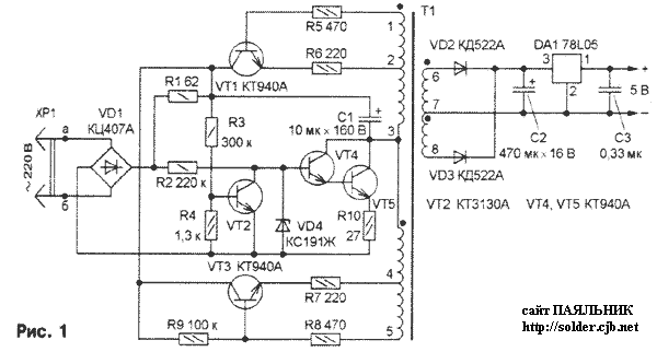блока для питания маломощной нагрузки (с потребляемым током не более 5...10 мА)