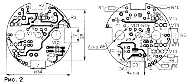 перпендикулярно плате. Стабилитрон VD4 припаивают к печатным проводникам со