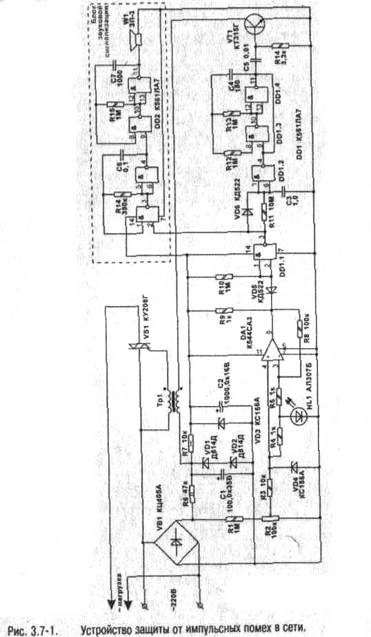 кГц для управления симмистором—DD 1.3, DD1.4, R 12, R 13, С4, С5, R14, ТР1,