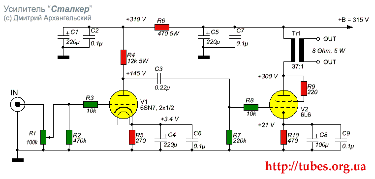 Лампы можно заменить на 6SN7 (6Н8С) и 6L6 (6П3С).