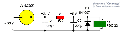 Усилитель Сталкер S002 - схема.