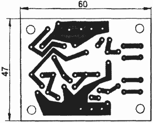 Рис.2.б. Схема расположения элементов Для контроля работы схемы желательно включить между положительным полюсом питания и средней точкой обмотки W1 амперметр с пределом измерения 10 А (показан на схеме рис.1). Он предназначен для визуального слежения за величиной тока, протекающего через транзисторы силовой цепи. При включении максимальной нагрузки во вторичную обмотку этот ток не должен превышать 10 А. При отсутствии нагрузки он должен быть меньше 5 А. Если же при включении инвертора в отсутствие нагрузки ток превышает 10 А, это значит, что пробит (или включен неправильно) какой-либо из диодов VD3, VD4 или транзисторов силовой цепи. Наладка инвертора заключается в настройке задающего генератора и осуществляется с помощью осциллографа или частотомера. Вход осциллографа (частотомера) подключается к коллектору одного из транзисторов VT1 или VT2, и на генератор подается питание. С помощью RP частота генератора устанавливается 50 Гц. Осциллографом желательно проконтролировать и форму прямоугольных импульсов. Настроенный инвертор монтируется в подходящем корпусе, на переднюю панель которого выводятся амперметр, держатель предохранителя, выключатель задающего генератора, клеммы подключения нагрузки и аккумуляторной батареи питания, а также индикаторы включения аккумулятора (красный) и задающего генератора (зеленый). Инвертор может осуществлять питание потребителя мощностью 100 Вт не менее 2 часов при использовании аккумуляторной батареи емкостью 44 А*ч. Автор: Радио, телевизия, электроника, 6/98. Перевод А. Бельского