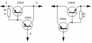 Транзистор КТ825А – составной. Его можно заменить парой транзисторов, как показано на рисунке 2. Данные транзисторы, соединенные по схеме Дарлингтона. Резистор R 4 подбирают экспериментально, по току срабатывания защиты. Резисторы R 7 и R 14 – многооборотные СП5-2. Резистор - R 13 любой переменный с линейной функциональной характеристикой (А). В авторском варианте применен переменный резистор ППБ-3А на 2,2К - 5% . Микросхемы DA 1 и DA 2 можно заменить аналогичными отечественными КР142ЕН5А и КР1162ЕН5А. Их мощность позволяет стабилизированное напряжение ± 5 В для питания внешних нагрузок с током потребления до 1А. Данной нагрузкой является цифровая панель, которая используется для цифровой индикации напряжения и тока в блоках питания. Если не использовать цифровую панель, то микросхемы DA 1 и DA 2 можно заменить микросхемами 78 L 05 и 79 L 05. Печатная плата блока питания показана на рис.3 и рис.4.