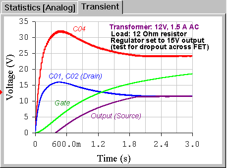 Это конечно симуляция, но вполне отражающее реальность. Обратите внимание - из-за холостого хода источника на первой секунде напряжение на C01-C02 может превысить 16В, так что используйте емкости на 25В.