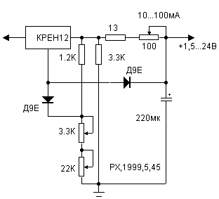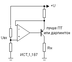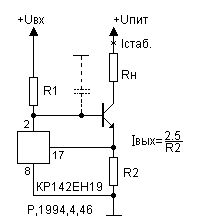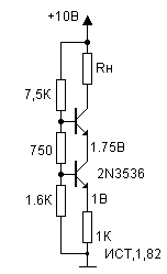 18.Стабилизатор напряжения с ограничением тока - источник тока.