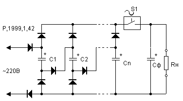 26.Структурная схема конденсаторного преобразователя напряжения с умножением тока.
