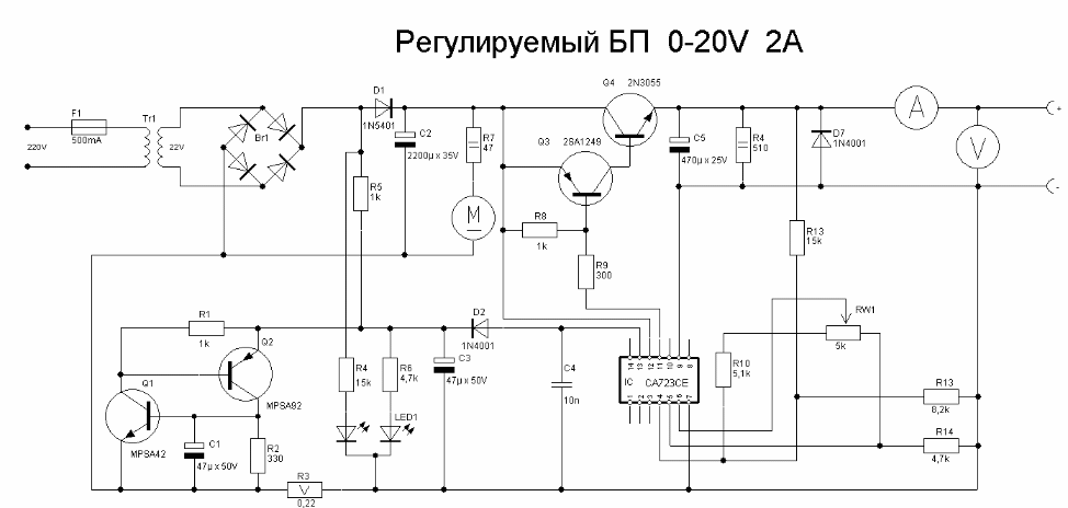 БП назывался LS2002A -типа лабораторного, с охлаждающим вентилятором, схема с защитой от КЗ. Внутри - полный Китай (я о качестве монтажа), но работает. ;) Я рисовал в Splan. Транзистор Q4 - на радиаторе. Может,кому пригодится...... Прислал Александр Курашов (AKurashov@PROM.INFORUM.RU ) Источник: www.evm.wallst.ru
