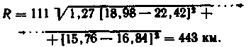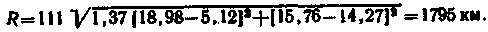 Для ультракоротковолновика очень важно уметь точно определять расстояние между корреспондентами. Обычно это делается так: определяется по QTH-локатору местонахождение корреспондента на карте н затем измеряется расстояние линейкой. При этом, как показывает опыт, допускаются существенные ошибки: во-первых, из-за того, что пока отсутствует единая карта QTH-локаторов, во-вторых, возможны погрешности в измерениях, в-третьих, из-за того, что они производятся по прямой, а не по дуге окружности радиуса Земли. Предлагаемая формула позволяет, не используя карту, определять расстояние между корреспондентами на трассах до 2000 км. В этом случае погрешность в определении расстояний на средних широтах не будет превышать 1...1,5 км (размер стороны малого квадрата QTH-локатора). Эту формулу можно рекомендовать для использования при подсчете очков в УКВ соревнованиях, что исключит расхождение в подсчете очков и значительно облегчит работу судейской коллегии. Расстояние между корреспондентами рассчитывают по следующей формуле: