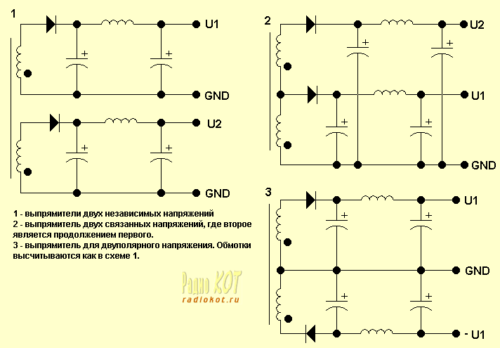 напряжений можно воспользоваться схемами (1), (2) или (3). Числа витков